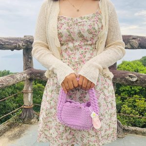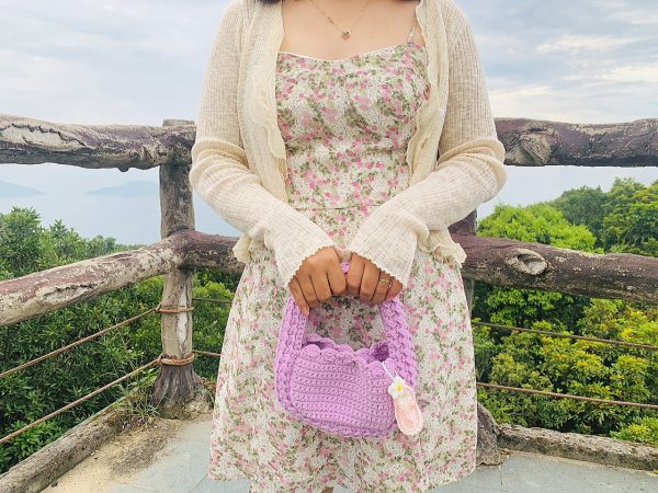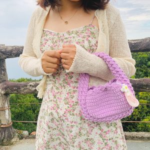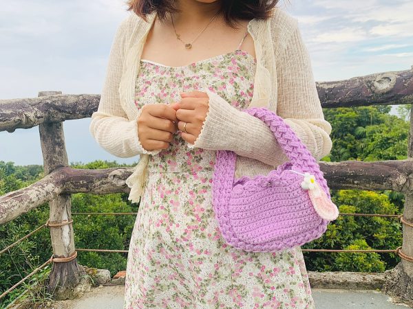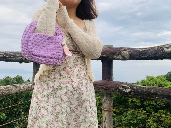 Túi len Handmade Màu Tím Mix Hoa