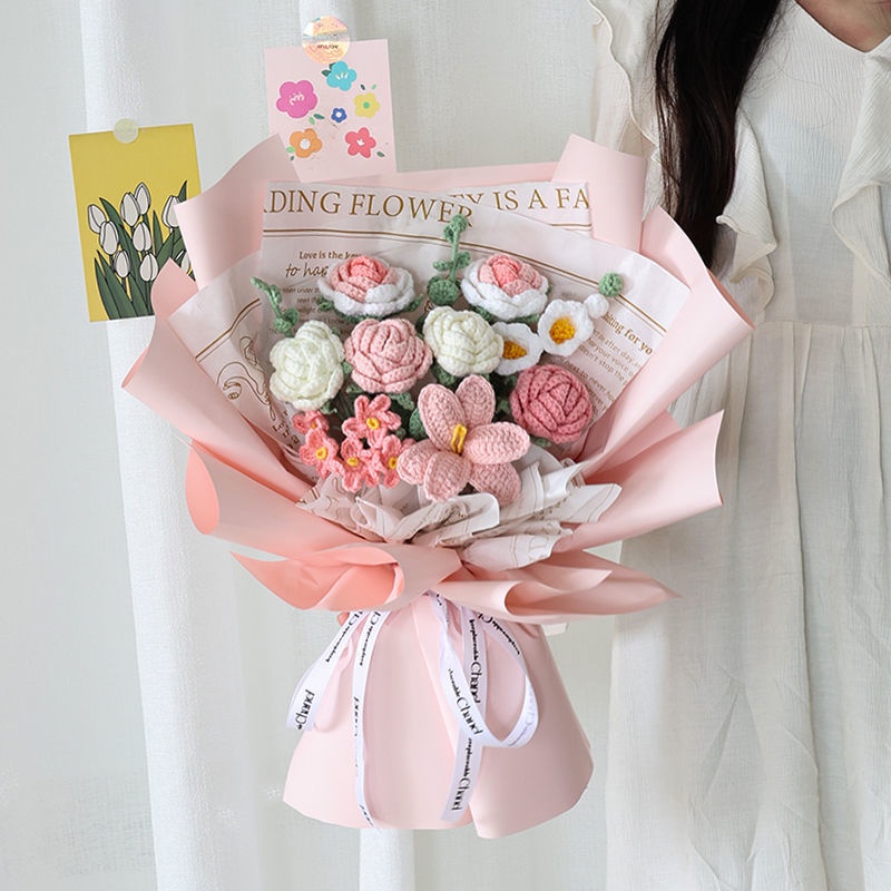 Bó Hoa Len Mix Màu Hồng Tặng Crush Chắc Chắn Đổ