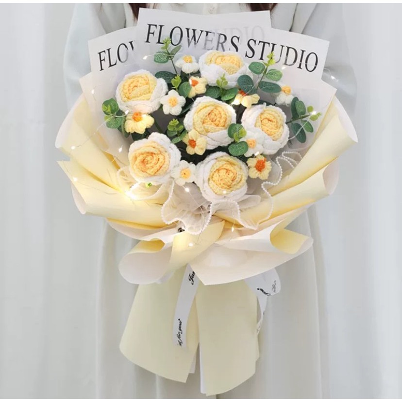 Bó Hoa Hồng Len 3 Bông Mix Hoa 5 Cánh Nhiều Màu Sắc